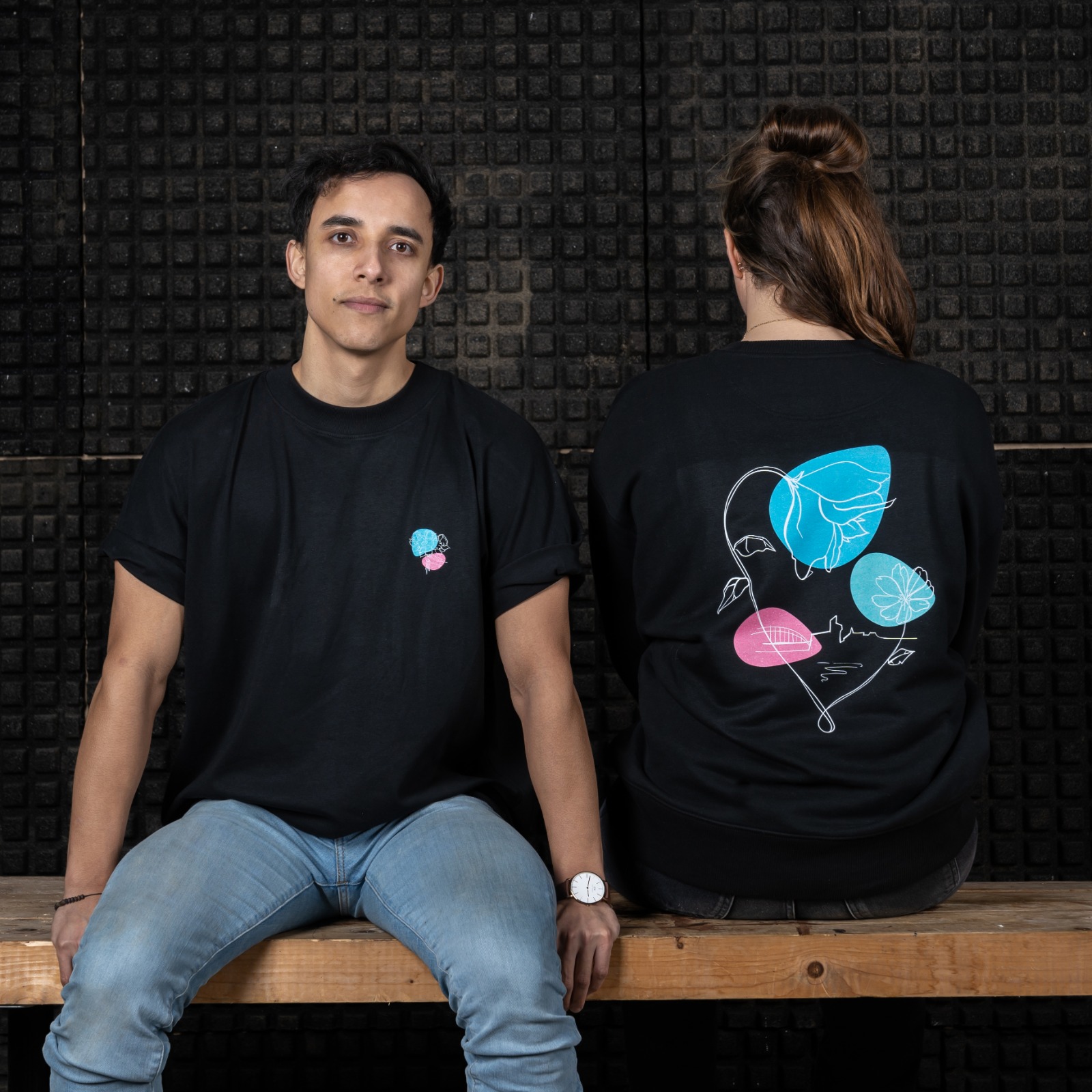 Merchandise namens evenementenorganisatie Boeket voor het initiatief “48 uur Samen Alleen” van Open Source Radio. Het ontwerp van deze merchandise ging samen met het ontwerp van de nieuwe huisstijl. Logischerwijs werd er dus ook gekozen voor dezelfde organische lineworkstijl ondersteunt met kleurrijke vlekken.